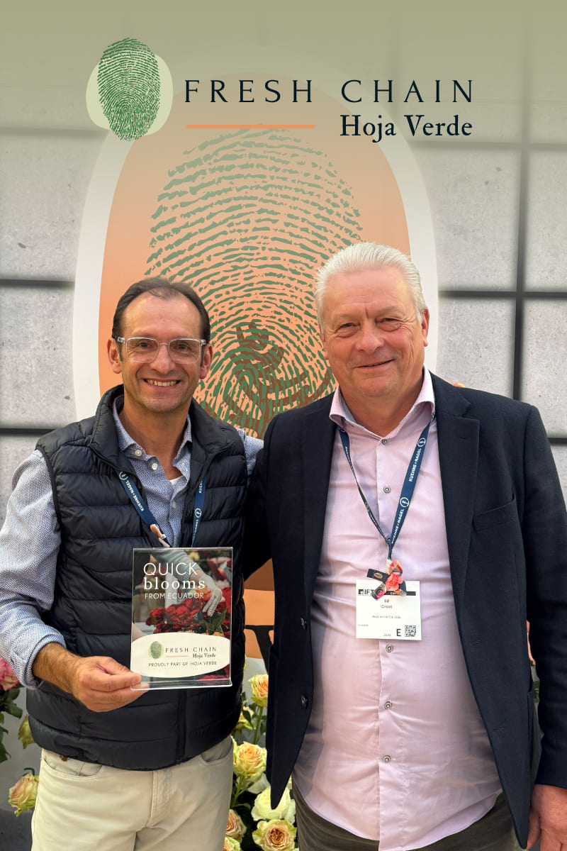 We began importing Hoja Verde roses from Ecuador in 1998. From the very beginning, our goal has been to build long-term relationships with both our suppliers and our customers, ensuring that the origin of each supplier remains visible throughout the supply chain. Since 2024, we have been part of the Hoja Verde Group. Through this partnership, we combine our strengths to work towards a sustainable supply chain, embracing processes, philosophies, and certifications that confirm sustainability as the core of our operations.
